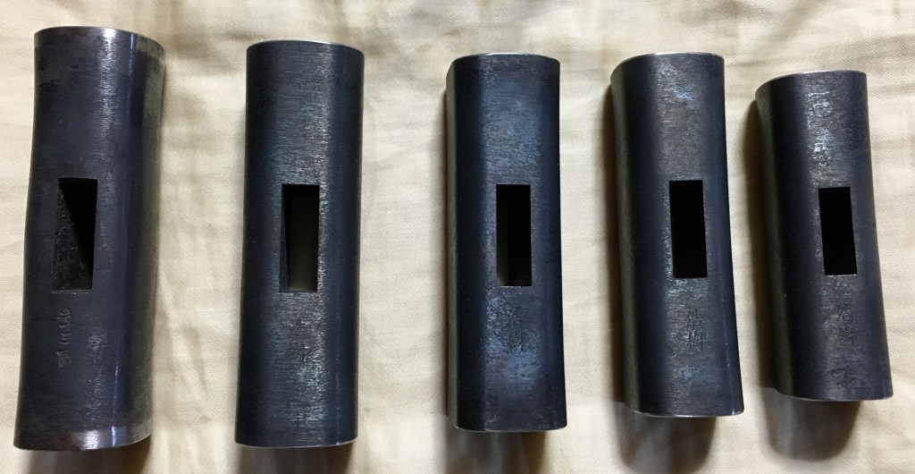Another advantage of a well-made gennou head is that its eye will have uniform interior dimensions. We talked about this in an earlier post. In summary, all four walls will be straight, clean, flat, free of wind, parallel and square to each other. This matters because a sloppy eye will not apply uniform pressure on the handle’s tenon, ensuring it will come loose sooner than later. In addition, this uneven pressure may also induce unwanted vibrations in the handle. I kid thee not.