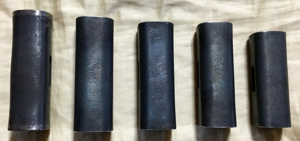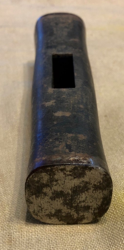 It’s interesting to note that the handle I made while residing in a cave (no plumbing!) was straight, unlike the handles your humble servant currently advocates, and that lower 1/3rd of the face (closest to the hand) mushroomed, while the upper 2/3rds did not deform at all. Curious….