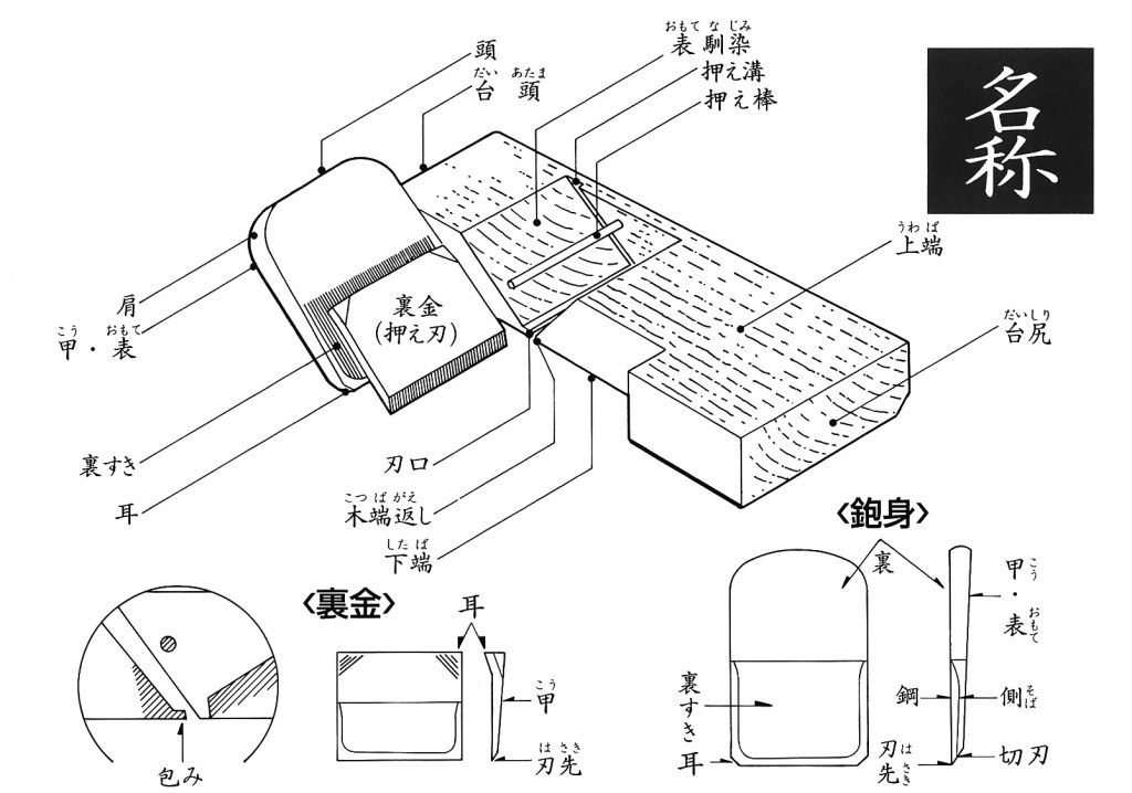 Indeed, since the plane is a relatively recent tool in the Japanese woodworker’s toolbox, and has a much longer archeological history in the West, it seems silly to use more Japanese words than absolutely necessary to describe something that did not originate in Japan, and can easily be described in English. I will, however, venture to describe some of the more common general terms specific to the Japanese handplane.