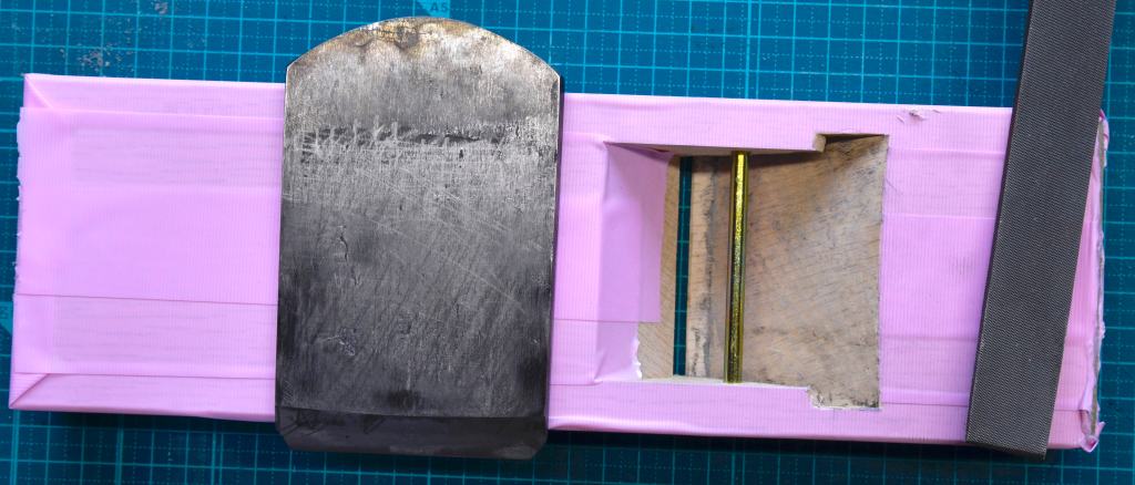 A common problem we see with old planes is cracked and split bodies caused by the tapered blade becoming shorter over the years due to repeated sharpenings, and therefore the edges of the blade exerting excessive pressure on the bottom of the grooves when a careless user mercilessly pounds the blade into the body. This sort of damage is entirely avoidable by humans, but some gorillas advocate paring the bottom of the grooves of new planes to create a gap of 2~2.5mm between the groove and blade to accommodate all the reduction in length the blade may experience over many years of service at once. To this practice, your most humble and obedient servant can only respond “Poppycock!”