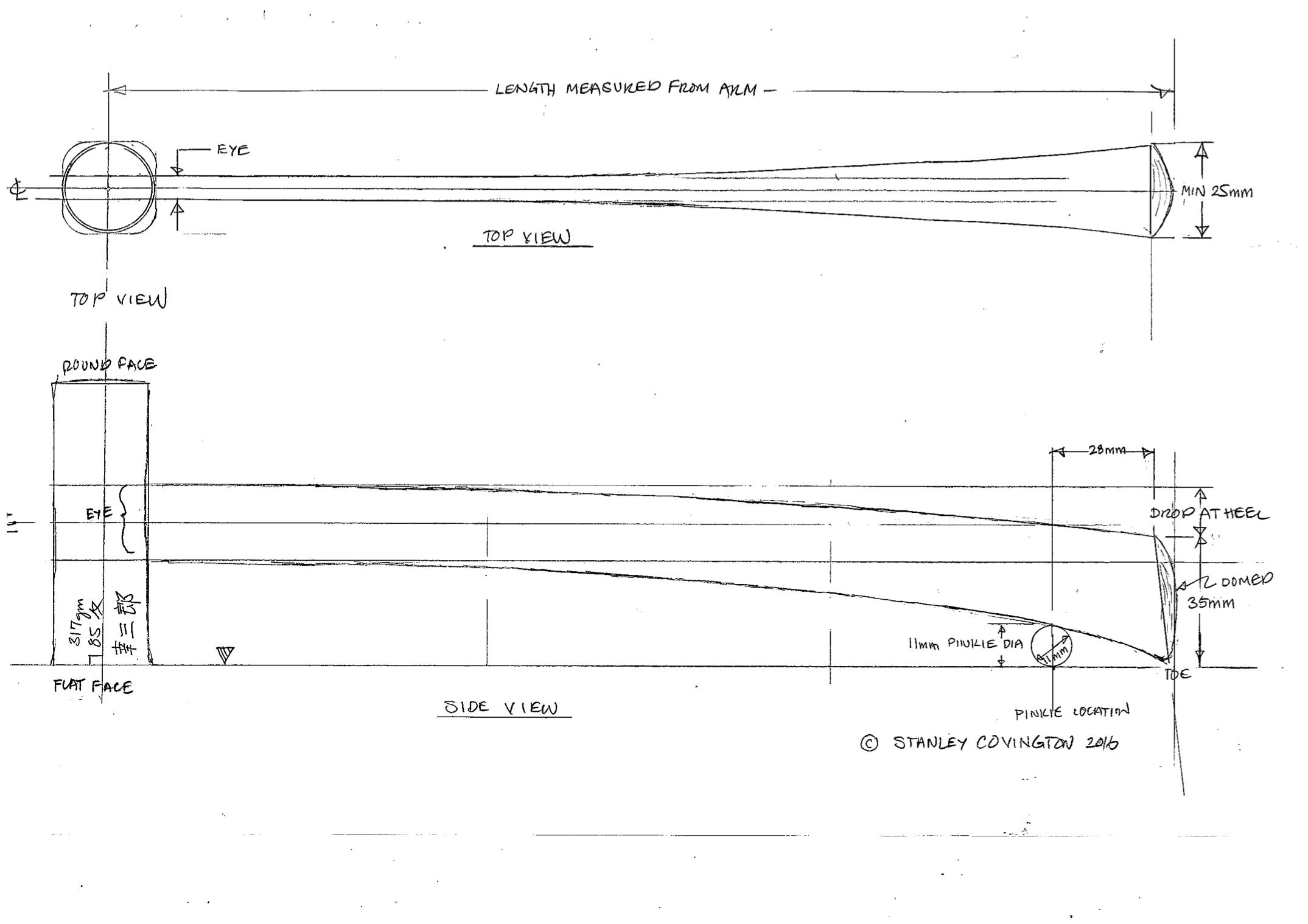Gentle Readers will have noticed from the drawings and photographs in this series so far that, unlike commercial handles, the handle we are designing does NOT exhibit a cancerous swell just below the eye. Make no mistake, this is not an error of omission nor the would-be supermodel in me seeking skinny expression! Remember, we are making a lean, mean, racing machine, not a nail bender with a sloppy eye and mass-produced tenon that needs wedges to hold it together.
