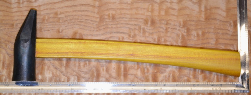 Please remember that, just like a baseball bat, a slender hammer handle is almost always superior to a fat one, and its length requires experimentation and adjustment to get right. And of course, being a minimalist, relatively slender instrument, it must be made from a piece of wood that can handle the forces that will act on it.