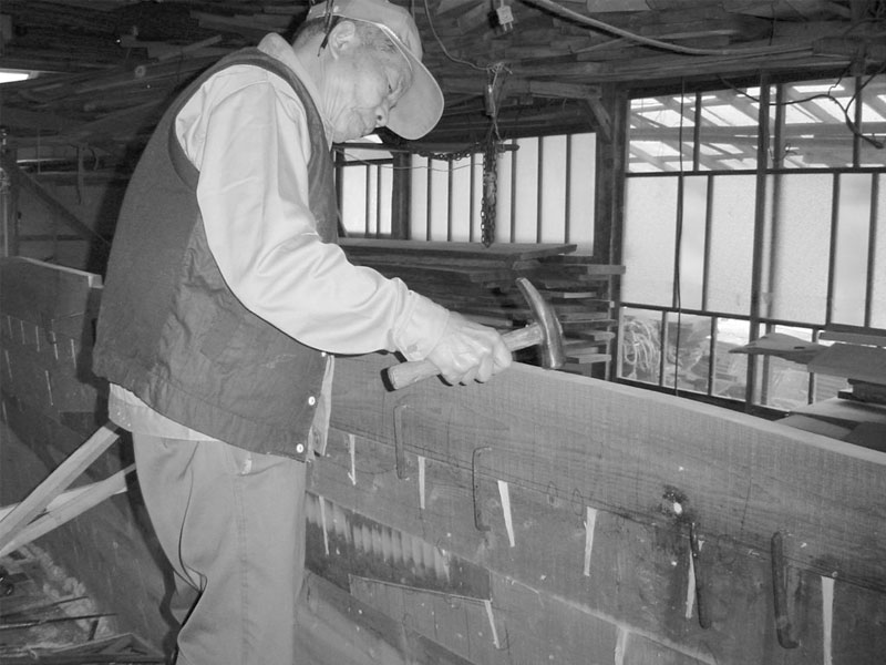 But more than plane or chisel, the tool that is always visible to others during the workday is the craftsman’s hammer comprised of the head forged by the blacksmith, and the handle made by the craftsman himself. The quality of this combination tells Japanese craftsmen much about the man that owns and uses the tool. A hand-forged head by Kosaburo or Hiroki with a graceful, professional-grade handle made by the owner, even if it is dinged through years of hard use, will be noticed by those with eyes to see for decades, even generations.