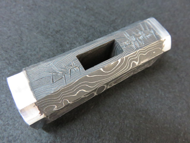 A chemically-blackened square head by Masayuki with his name engraved in red-filled characters