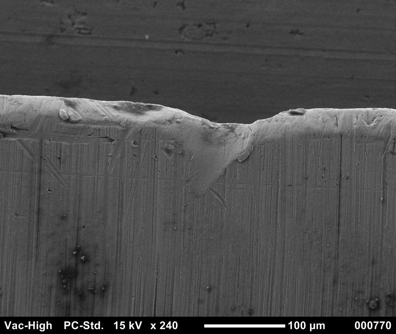 A steel blade dulls when the crystalline structure either shatters, or the pressure and friction of cutting wears away or cracks the softer supporting matrix, allowing the carbides to be torn from the matrix leaving behind gaps of soft, blunt metal. The larger the carbide clumps are and the greater the distance between them, the more easily they are shattered and torn away, and the duller a blade becomes with each crystal’s failure.